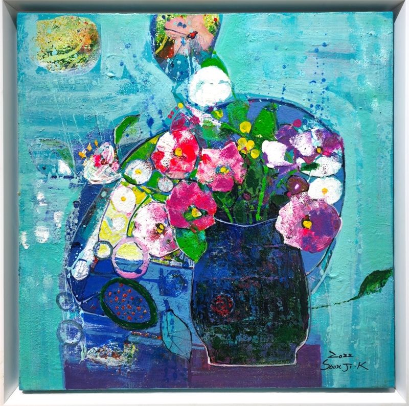 김순지작가_ 청록 속의 꽃노래 _ 10호_혼합재료_2022