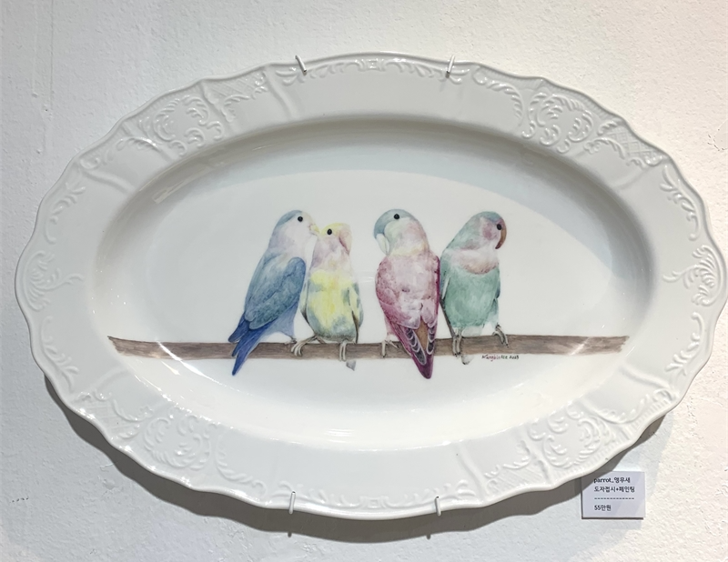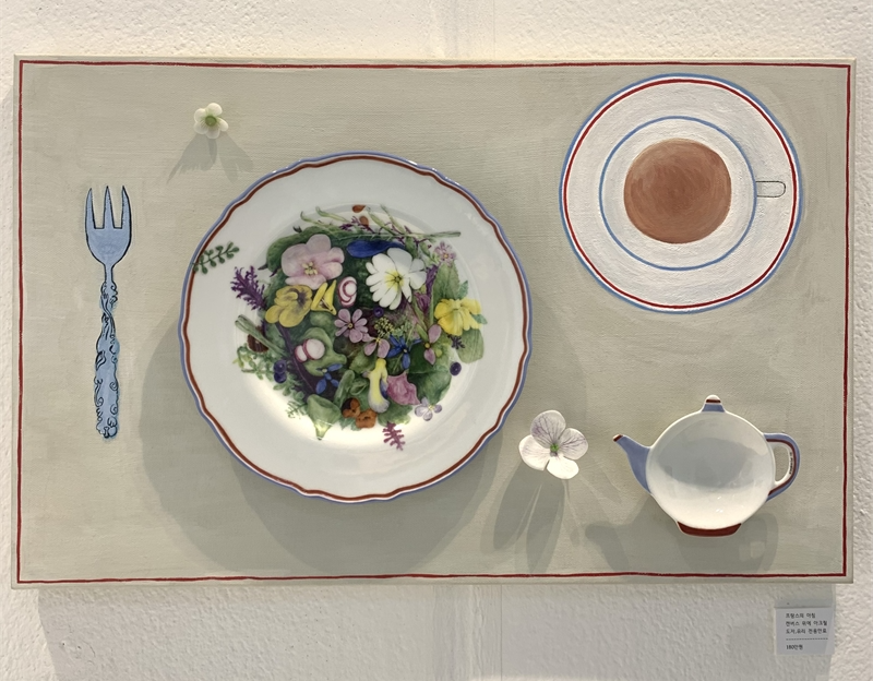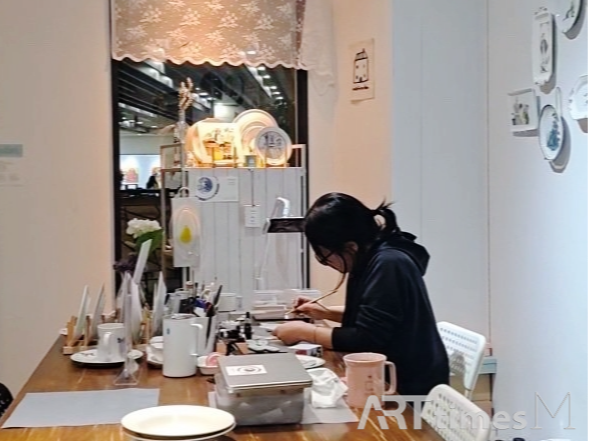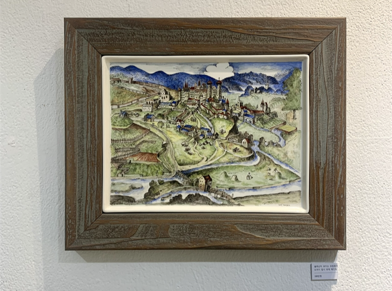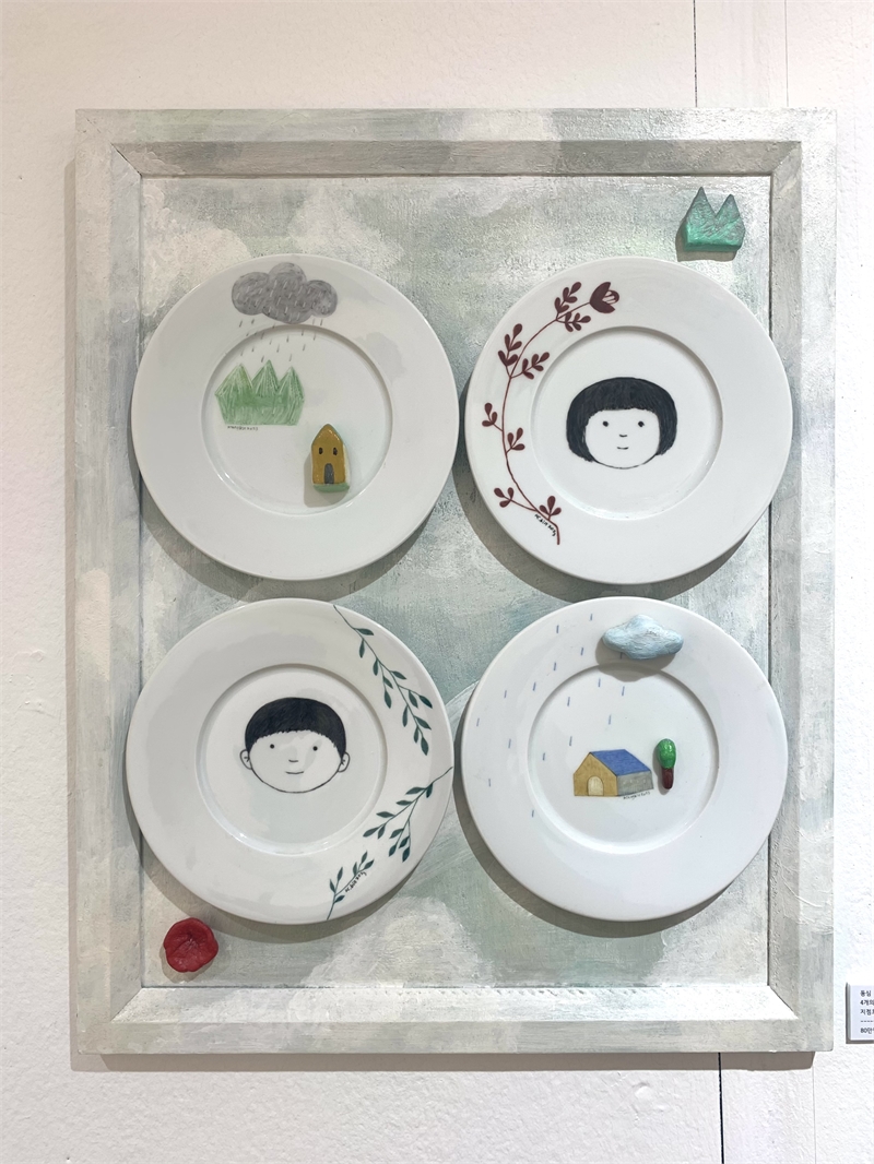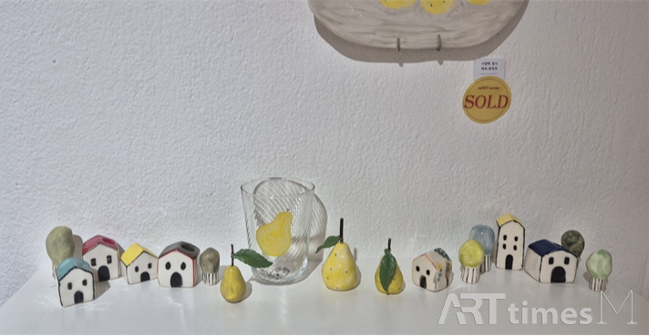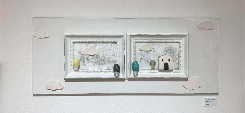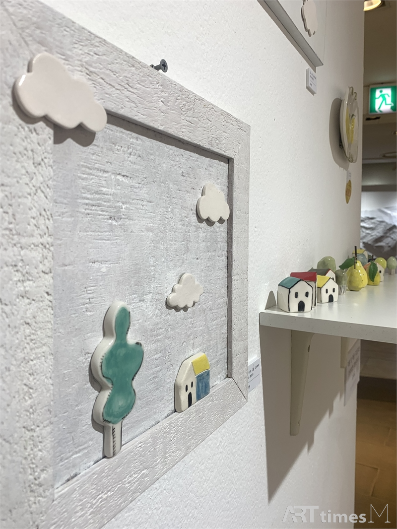 특히 이번 전시는 작가가 어린 시절 즐겨 그리던 집과 나무의 이미지를 도자기로 재구성하여 회화로 이어지는 작업의 흐름을 집중적으로 보여준다. 작가는 “지친 일상 중에 잠시 평온함과 쉼이 있었다”라는 감정이 전시 전체를 관통하길 바란다고 전한다. 도자기와 유리 위에 그려진 동화적 풍경, 유럽의 마을과 꽃, 새의 이미지는 작가 스스로가 위로받았던 기억의 장면이자, 관람자에게도 잔잔한 휴식을 건네는 시도로 읽힌다.