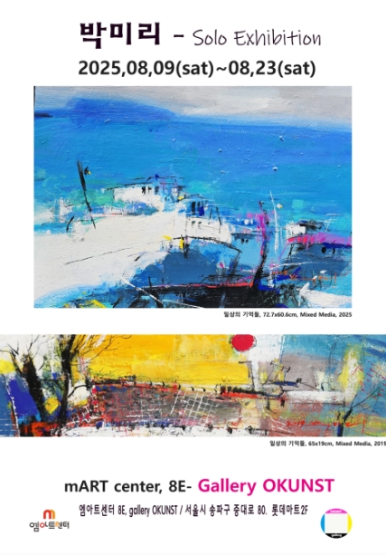 서울 엠아트센터는 오는 8월 23일까지 8E 전시관에서 박미리(PARK, Miri) 개인전 「일상의 기억들」을 개최한다. 이번 전시는 회화적 표현의 확장을 모색하며 형태를 넘어선 선과 색채의 자유로운 울림을 담은 작품들을 선보인다.