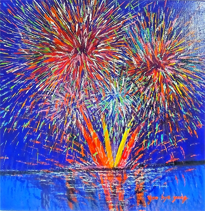 밤하늘을 수놓는 불꽃놀이를 그린 작품은 보고 있으면 절로 가슴이 벅차올랐습니다. 작가님의 감사와 기쁨이 저절로 전해지는 듯했어요.