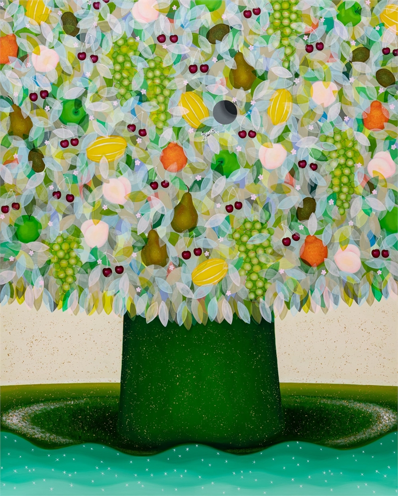 다양한 과일과 사계절의 색을 담은 투명한 잎들이 열린 큰 나무를 중심으로, 크고 거대한 존재이면서도 작은 식물처럼 인식할 수 있는 시선을 제안하는 이예기 작가를 만났다.