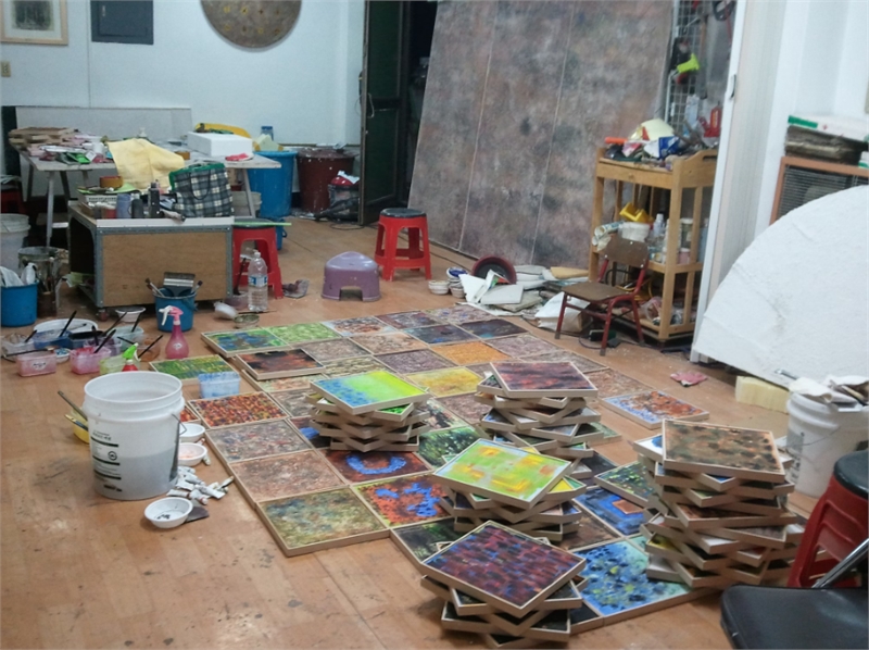 김문석 작가의 작업 방식은 일반적인 작가들과는 차별화된다. 그는 하나의 작품에 몰입해 완성하는 방식이 아닌, 여러 작품을 동시에 병행하는 다작(多作) 체계를 택하고 있다.