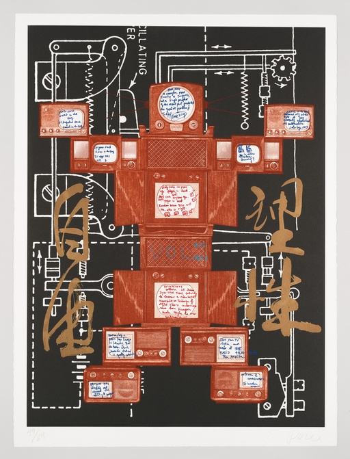 백남준_진화,혁명,결의_볼테르 ‘이성과 자유’ _75.9x56.8cm_석판화,에칭_1989