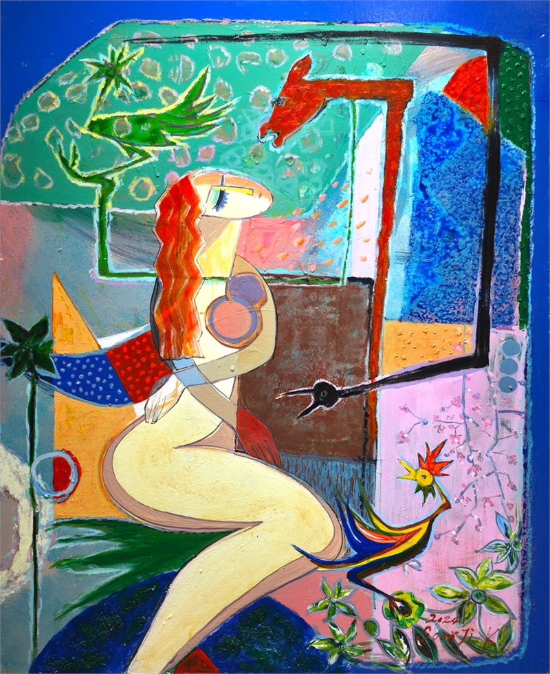 김순지작가_ 청록 속의 꽃노래 _ 10호_혼합재료_2022
