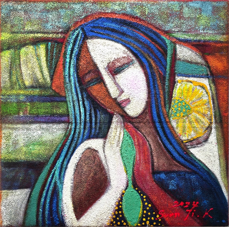 김순지 작가는 화려한 색채와 강렬한 질감, 그리고 기하학적 조형 감각을 특징으로 한다. 그는 “반복되는 붓질을 통해 쌓여가는 질감에서 느껴지는 희열과 쾌감은 작업하는 화가만이 느낄 수 있는 것”이라며, “사각형의 캔버스 안에 과거와 현재, 그리고 미래까지도 모두 불러와 나만의 세상을 창조한다”고 작업에 대해 설명한다.