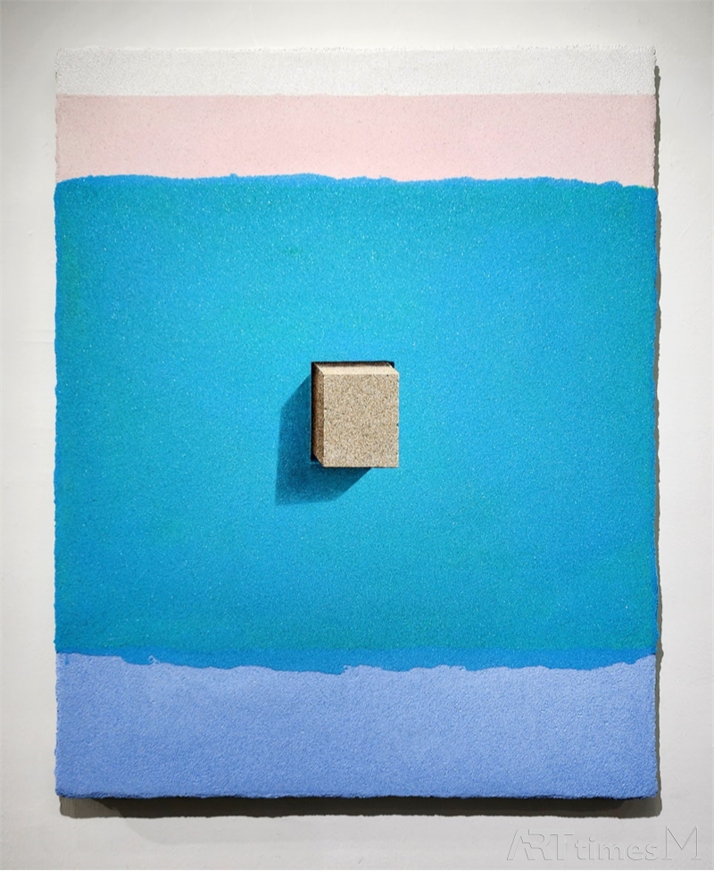 작가는 “모래의 입자와 빛의 미세한 변화 속에서 현실과 이미지의 경계를 사유하고자 했다”고 말한다. 가까이 다가가면 거친 질감이 만들어내는 물성의 리듬과 시선 각도에 따라 달라지는 색의 깊이를 경험할 수 있으며, 이는 작품이 지닌 입체성과 시간성을 동시에 느끼게 한다.
