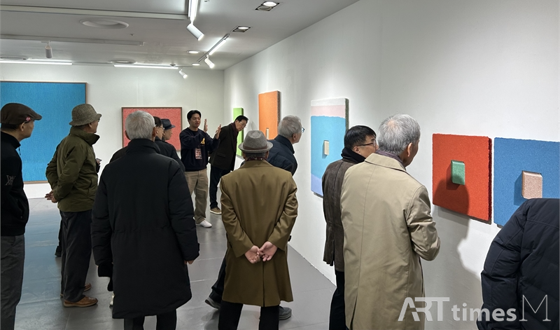 삼성의 퇴직 임원들이 전시장을 방문하여 김강용작가의 작품을 관람하고 있다. 자료제공: 송파 엠아트센터