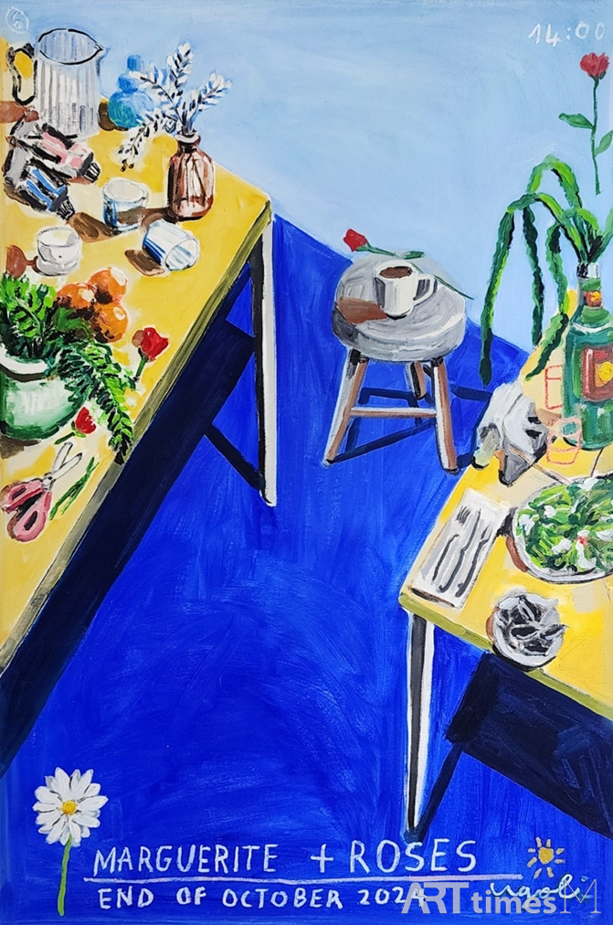 이번 전시에는 〈Lobster 87〉(2024), 〈And We Will Be Happy〉(2023), 〈Marguerite & Roses〉(2024) 등 다양한 신작이 함께 선보인다. 작품 속 식탁과 꽃병, 사물이 이루는 조용한 균형은 일상의 시간 속에서 피어나는 미적 순간을 포착하고, 색면과 여백은 관람객의 시선을 머무르게 하며 사유의 결을 확장한다.
